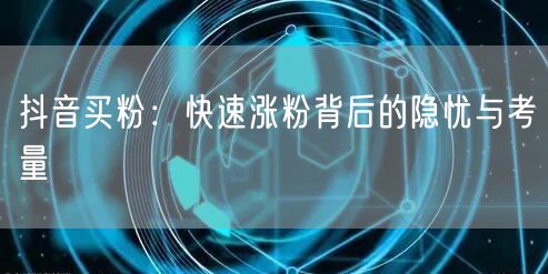 在当今社交媒体盛行的时代,抖音作为短视频领域的佼佼者,吸引了无数用户和创作者的加入。随着竞争的日益激烈,如何快速增加粉丝数量成为了许多创作者关注的焦点。其中,抖音买粉作为一种看似“快捷”的方式,逐渐进入了人们的视野。然而,这种快速涨粉的背后,却隐藏着诸多不容忽视的隐忧与考量。