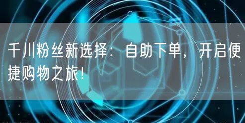 总之,千川粉丝新选择:自助下单,正以它独有的魅力,引领着便捷购物的新风尚。它让购物变得更加简单、高效、愉快,让每一位粉丝都能在忙碌的生活中找到一丝便捷与惬意。如果你也是千川的忠实粉丝,那么不妨尝试一下自助下单功能吧,相信它会给你带来不一样的购物体验!