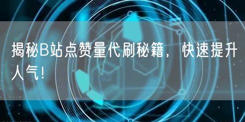 在B站这个充满创意与活力的视频平台上,每一个UP主都渴望自己的作品能够获得更多关注与点赞。然而,面对激烈的竞争环境,如何快速提升视频的人气成为了许多UP主关注的焦点。今天,我们就来揭秘B站点赞量代刷的秘籍,助你轻松提升视频人气!
